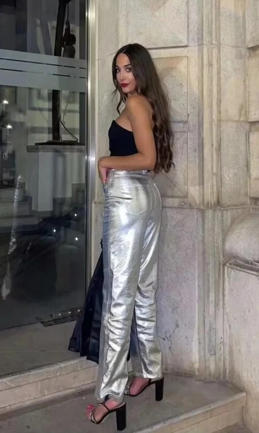 Bring Glanz in deinen Alltag: Die Lustra High-Waist Hose überzeugt mit edlem Schimmer, hoher Taille und klarer Linienführung. Der gerade Schnitt sorgt dafür, dass die Hose elegant fällt, während der hohe Bund deine Silhouette schön betont. Ideal für elegante Looks oder stylische Statement-Outfits, die auffallen.